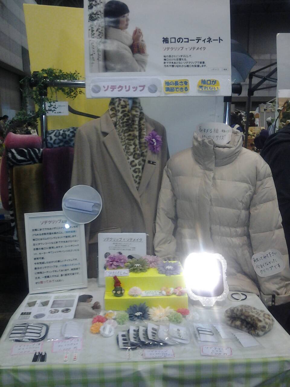 2015年12月12日(土)13日(日)ポートメッセなごやにて開催されましたクリエーターズマーケットに初参加いたしました。お忙しい中、ご来店いただいたお客様に心から感謝申し上げます。土曜日にお買い上げいただいたお客様が、日曜日にお気に入りの上着に付けている様子を見せに来て下さり、大変お似合いで嬉しく拝見いたしました。ソデクリップをご購入いただき、カバーの作り方を熱心に聞いて下さったお客様もありました。ご家族で、何セットもご購入いただいたお客様もございました。男性のお客様もソデクリップやソデメイクに興味を持っていただき、ご購入いただきました。本当に多くのお客様に見ていただくことができ、喜んでいただくことができ、心より嬉しく思いました。これからもますます精進してまいりますので、ソデメイク工房をよろしくお願いいたします。